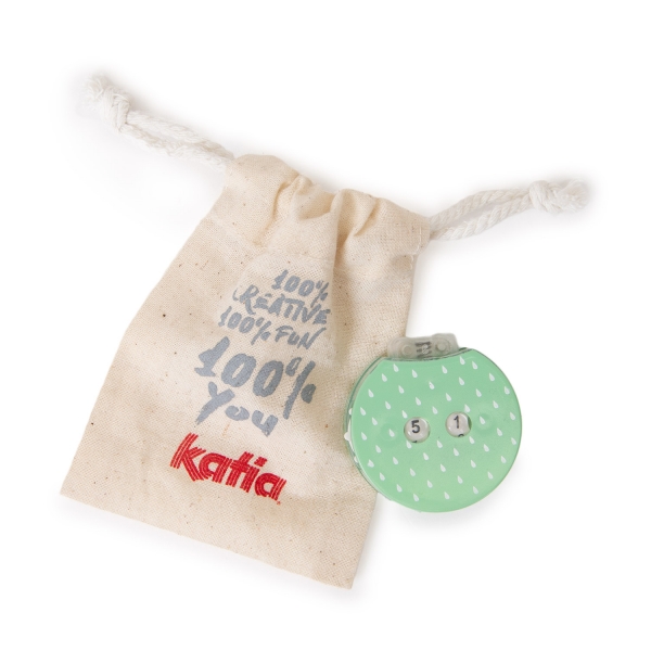 Lleva la cuenta de puntos y vueltas al tejer con este cuentavueltas redondo en un bonito color verde mint. Cuando termines tu labor, guarda el contador de puntos en la bolsita de algodón con cordón de cierre. Coloca este cuentavueltas imantado en la pulsera con imán a juego de la colección de accesorios Katia 100% You y así, pulsar el botón del contador de vueltas fácilmente mientras tejes. Medidas cuentavueltas: 4 cm diámetro x 1,5 cm alto.