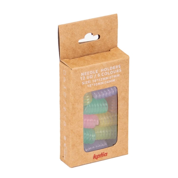 Este set contiene 12 espirales en 6 colores diferentes para sujetar y guardar juntas tus pares de agujas de punto. Son espirales que se adaptan a agujas de 2.0-5.0 mm (6 unidades) y agujas 4.5-6.5 mm (6 unidades) y sirven tanto para agujas rectas como circulares. Gracias a sus colores diferentes, a juego con el resto de accesorios Katia, ¡puedes identificarlas rápidamente!