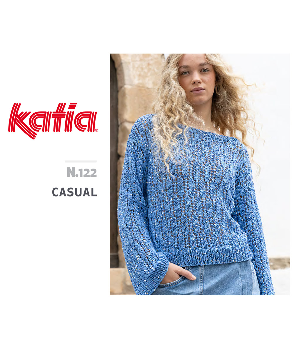 Exprésate con color y brillo gracias a la Revista Katia Casual 122, una propuesta vibrante y completa con 25 modelos de prendas y accesorios de punto y ganchillo para mujer y hombre. Tops, vestidos, chaquetas y bolsos se llenan de energía con hilos como Katia Cleopatra, Katia Estrella o Katia Fair Cotton Arlequino. Diseños versátiles con paillettes y texturas únicas, perfectos para looks relajados o de noche. Una colección llena de estilo que convierte cada proyecto en un juego de luz y color. Conecta con tu creatividad y disfruta tejiendo con fibras naturales que iluminan tu armario y tu rutina.